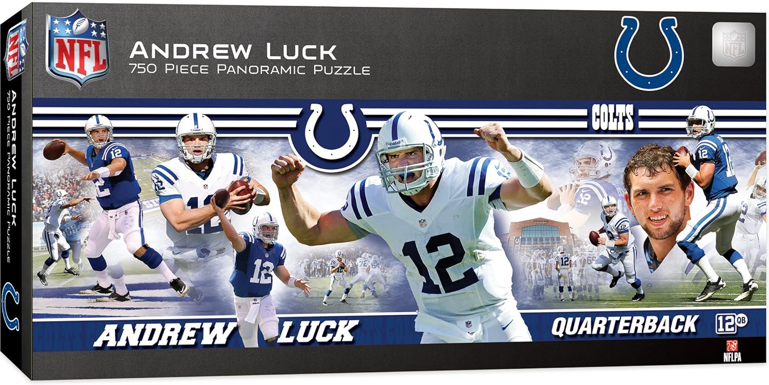 You might also like. This masterpieces shaped puzzle features the indianapolis colts popular players from 2017 making it perfect for any colts fanatic. Product description this masterpieces nfl 1000 piece 13 inch x 39 inch panoramic indianapolis colts puzzle features the view of the indianapolis colts lucas oil stadium with such incredible detail that its common for you to find yourself in the picture.