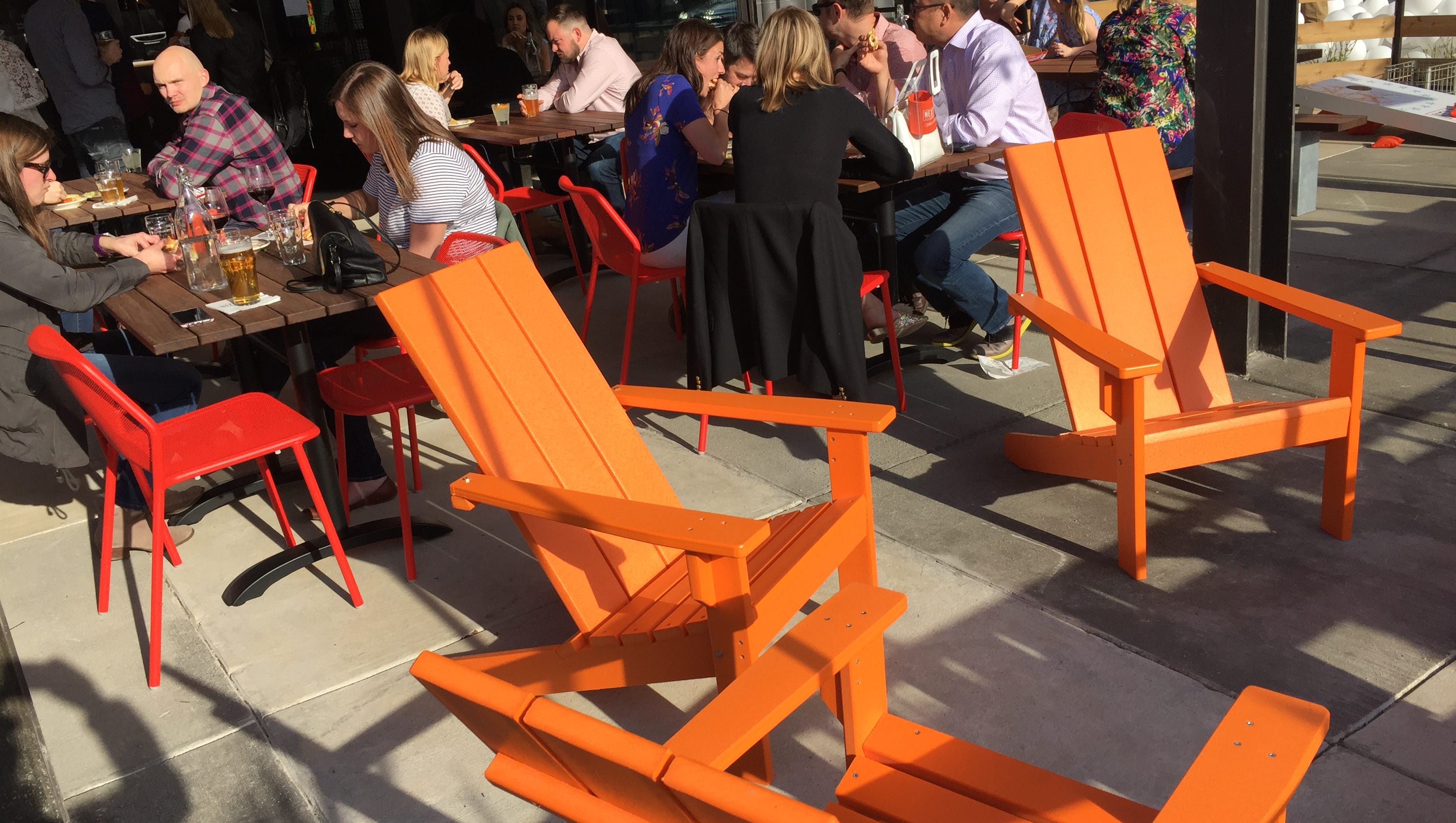 Indoor Seats Along The Window Overlooking The Outdoor Dining Area