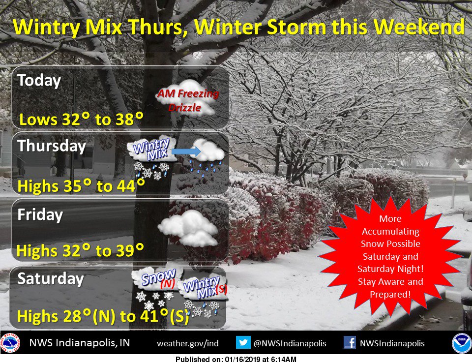 Nws Indianapolis On Twitter Freezing Drizzle This Morning Wintry Mix Wed Night Through Thurs Morn Snowstorm This Weekend Highest Snow Amounts North Inwx Nwsind Https T Co Wok3c3snwo